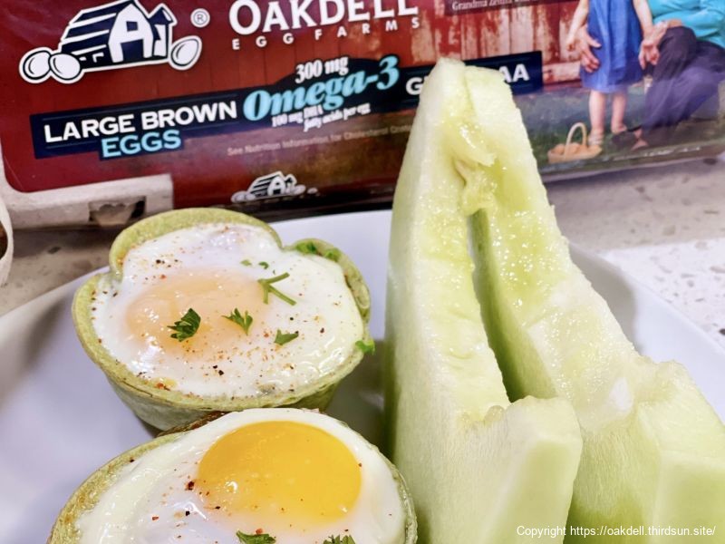 - Bake in a 350 degree oven until eggs are cooked through (about 10 minutes).