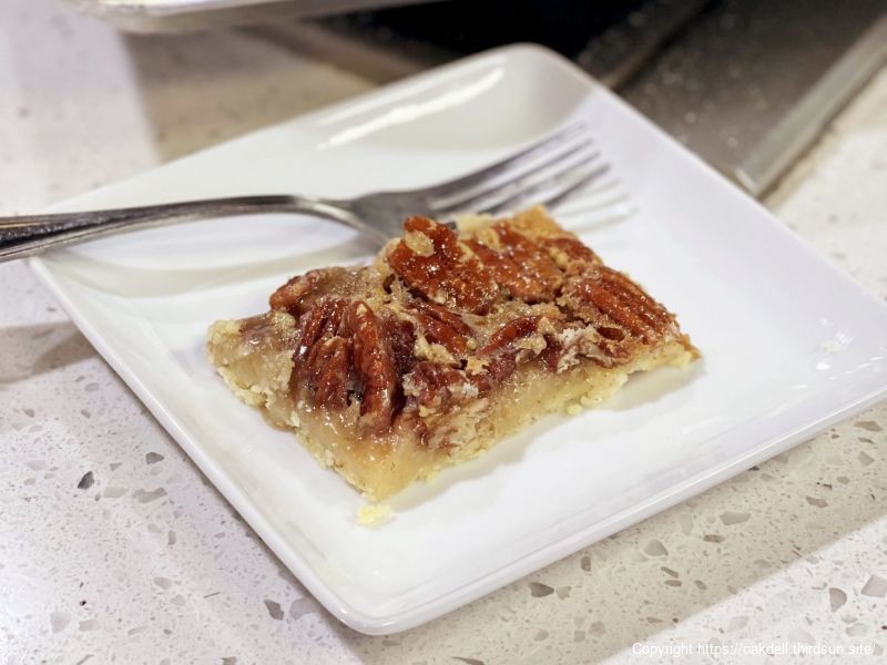 - When the pecan bars are fully baked, remove them from the oven and allow them to cool completely before cutting. Serve and Enjoy!