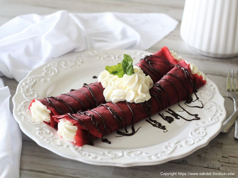 - Place filling inside of each crepe and roll up. Top with melted chocolate and more filling if desired.